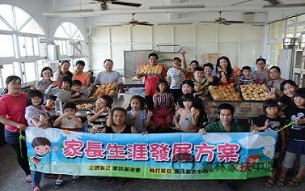 10月20日家長生涯發展方案與北港社區興力方案共同辦理親子烘培手作課程,家長捲袖擔任烘培老師,細心教導社區親子及扶助家庭親子製作奶酥餡甜麵包