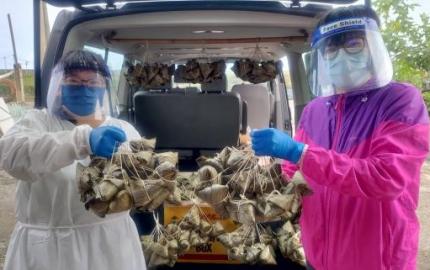 疫情打亂了所有生活步調,但「育達粽子」總共1000顆粽子,送50户家庭,沒有延誤,育達慈善會依然準時送抵雲林家扶服務家庭手中
